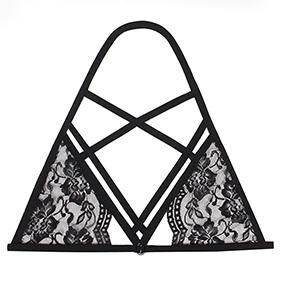 Bullker กางเขนกลวง Strappy SHEER ชุดชั้นในลูกไม้เซ็กซี่ Lady เทียมชุดชั้นใน Bra